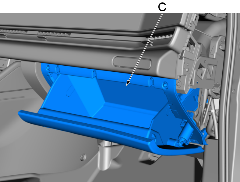 d.使用内饰件拆卸工具拆卸手套箱(C)。