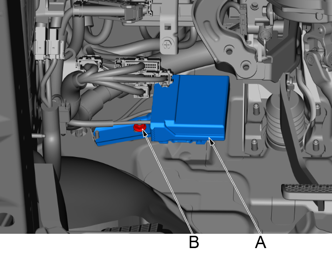 a.使用10mm套筒拆卸固定螺母(A),拆下灯光控制单元及支架(B)。