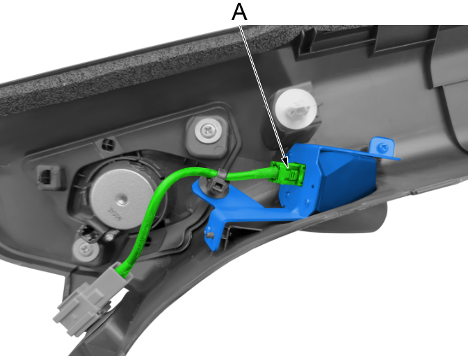 a.按压插接器锁止卡,脱开DMC摄像头总成插接器(A)。