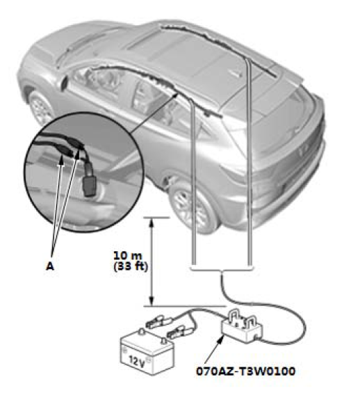 侧气囊 8.断开地板线束上的左侧和右侧气囊充气装置连接器(A)。 |