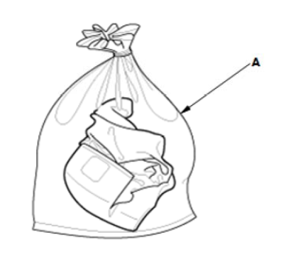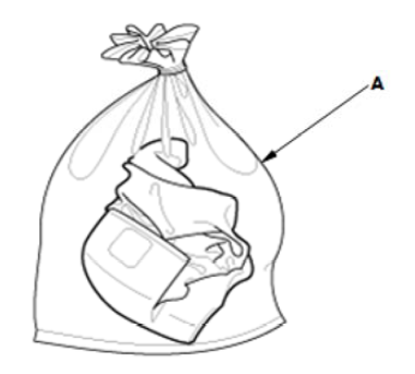 19.报废整个气囊或张紧器。任何零件都不能重新使用。将其放到结实的塑料包(A)中,并牢固密封。根据当地规定,报废已展开的气囊。 | ||