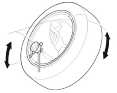 7.如果轴承轴向间隙在规定范围内,但是车轮跳动量大于使用极限,则更换车轮。