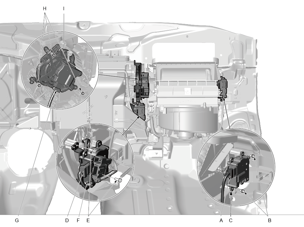 3.脱开插头(G),用十字起拆卸模式控制电机的三个固定螺钉(H),取下模式控制电机(I)。