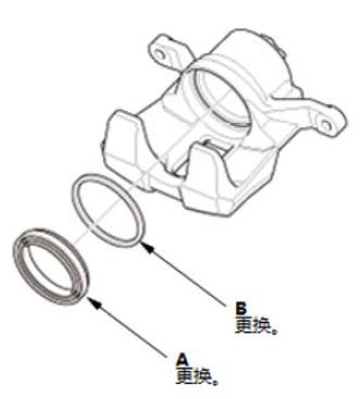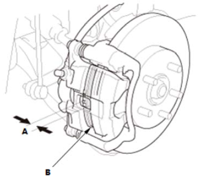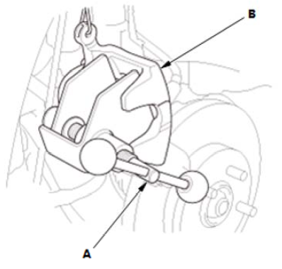 1.拆下制动软管安装螺栓 (A)。 2.拆下制动钳总成 (B)。