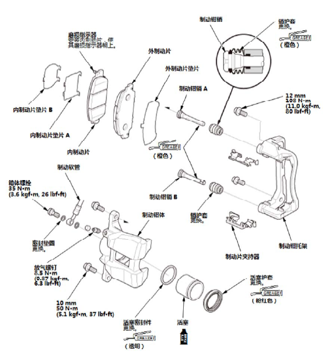 使润滑脂远离制动盘和制动片。 |