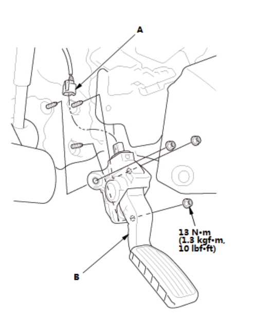 2.使用10mm套筒或扳手拆卸VCU整车控制单元固定螺栓(B)。 3.取下VCU整车控制单元(C)。 |