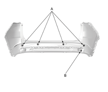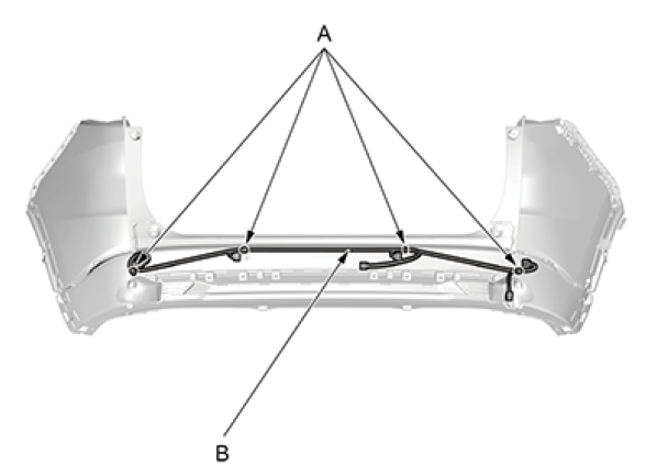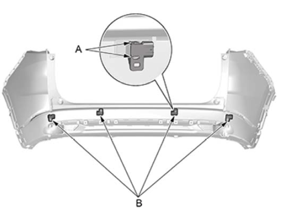 1. 拨开后雷达传感器安装支架两侧固定卡(A),取 下后雷达传感器(B)。