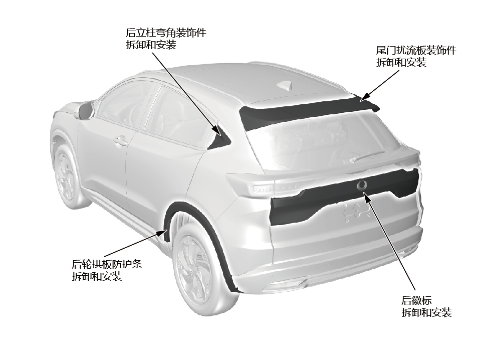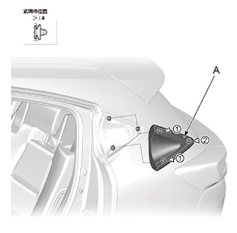 1. 向上撬起后立柱弯角装饰件 (A),然后按照图示数 字顺序,拆下卡扣。 |