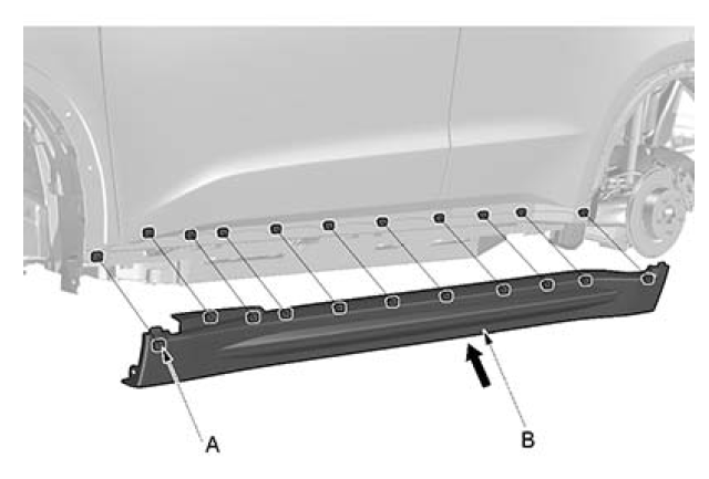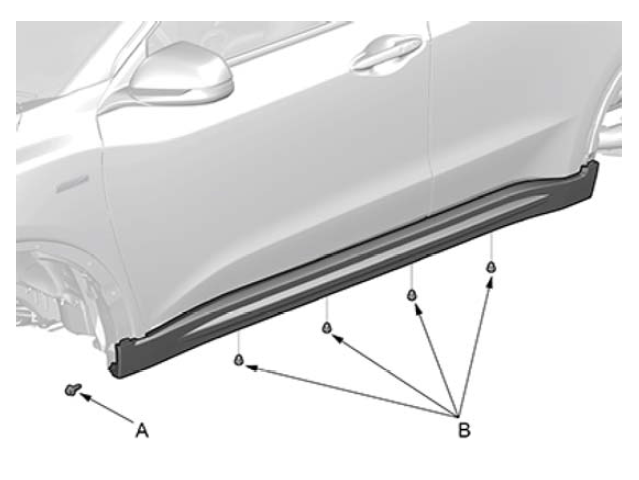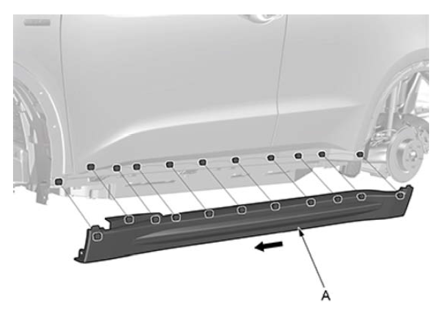 3. 向前滑动侧门槛版(A)并将其拆下。