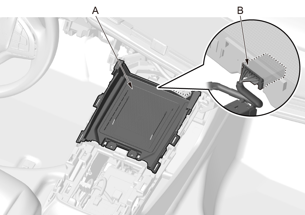 1. 脱开无线充电器单元插接器(B)。