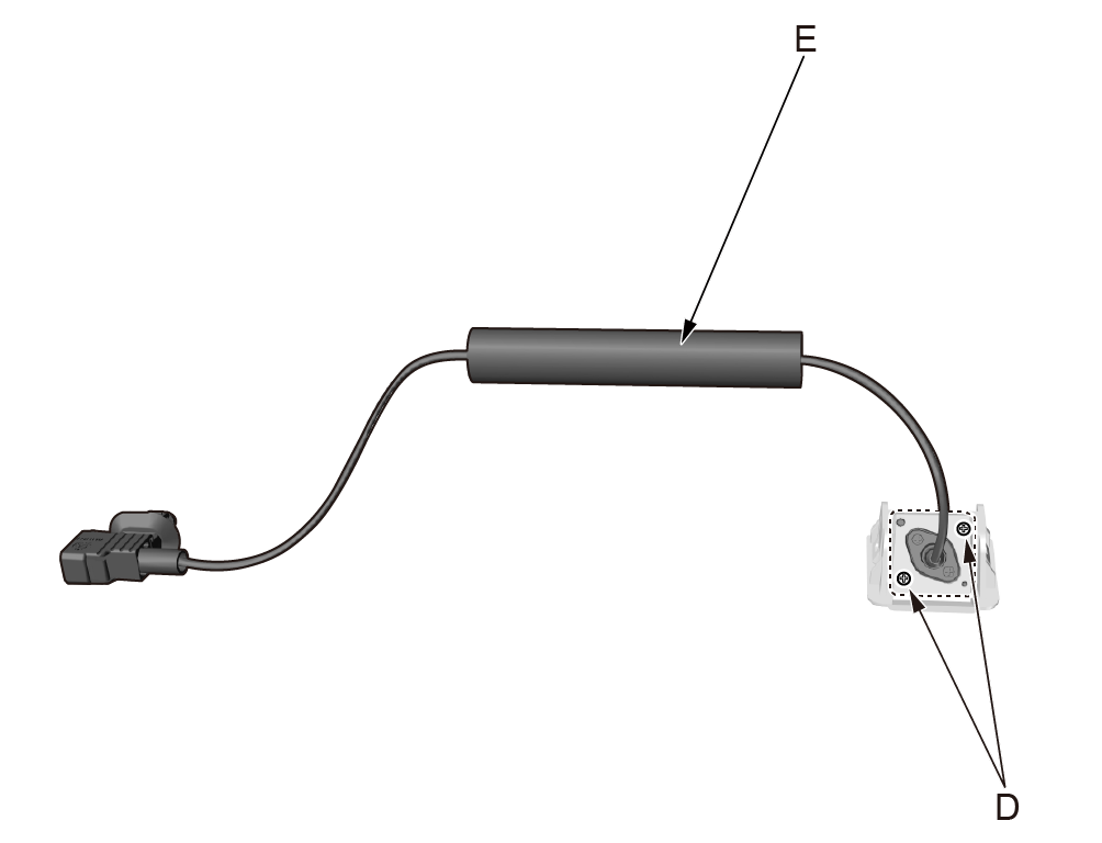 3. 使用十字起拆卸后视摄像头固定螺钉(D),取出后视摄像头(E)。 |