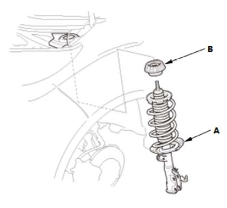 5.拆下减振器/弹簧 (A) 和减振器橡胶支座 (B)。