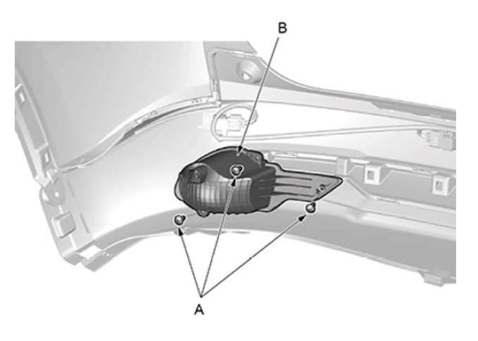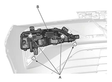 1.使用十字起拆卸前雾灯/转向信号灯4个固定螺钉(A)。 2. 取下前雾灯/转向信号灯(B)。 |
