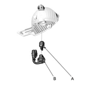 2.逆时针转动灯座 (B) 以将其从壳体上拆下。 3.拆下灯座上的灯泡(A)。 |