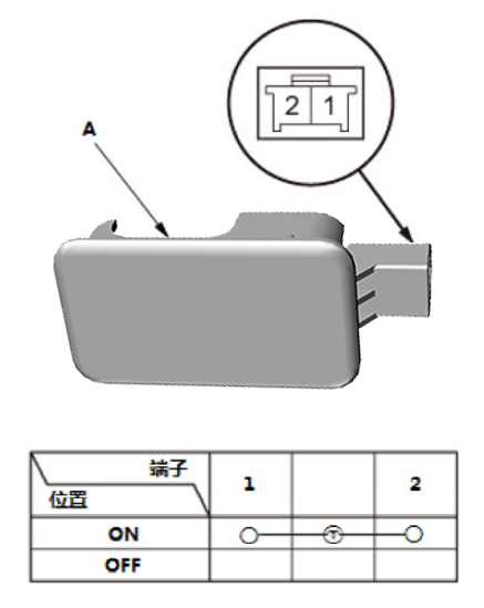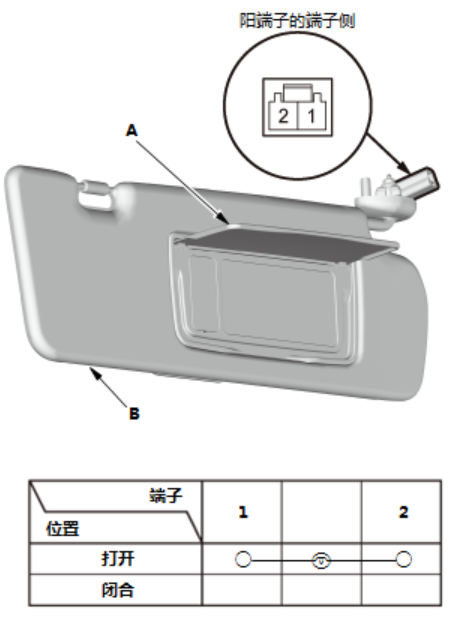 1.根据表中每个化妆镜盖(A)的位置,检查端子之间是否导通。 |
