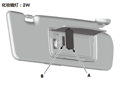 部分车型配有内置于化妆镜的化妆镜灯。化妆镜盖打开时,化妆镜灯可照明。