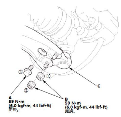 安装时,按所示顺序安装新的法兰螺栓和新的自锁螺母。