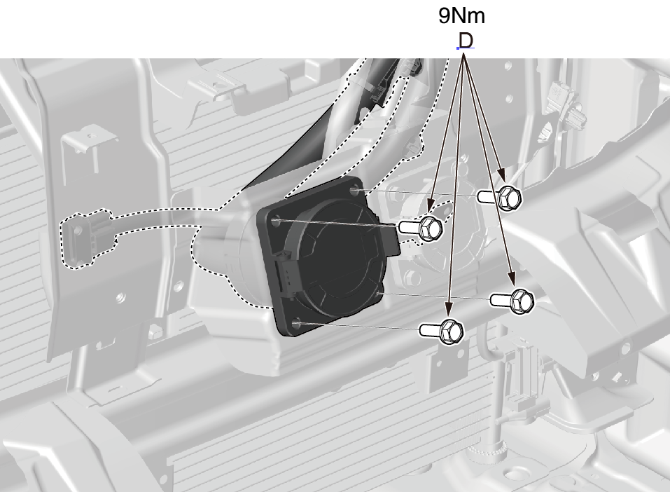 4.使用 10mm 套筒拆卸快充充电头固定螺栓(D)。 |