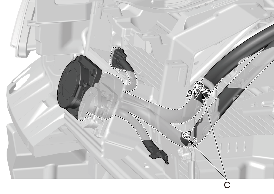 3.使用内饰件拆卸工具拆卸快充电缆固定卡扣(C)。 |