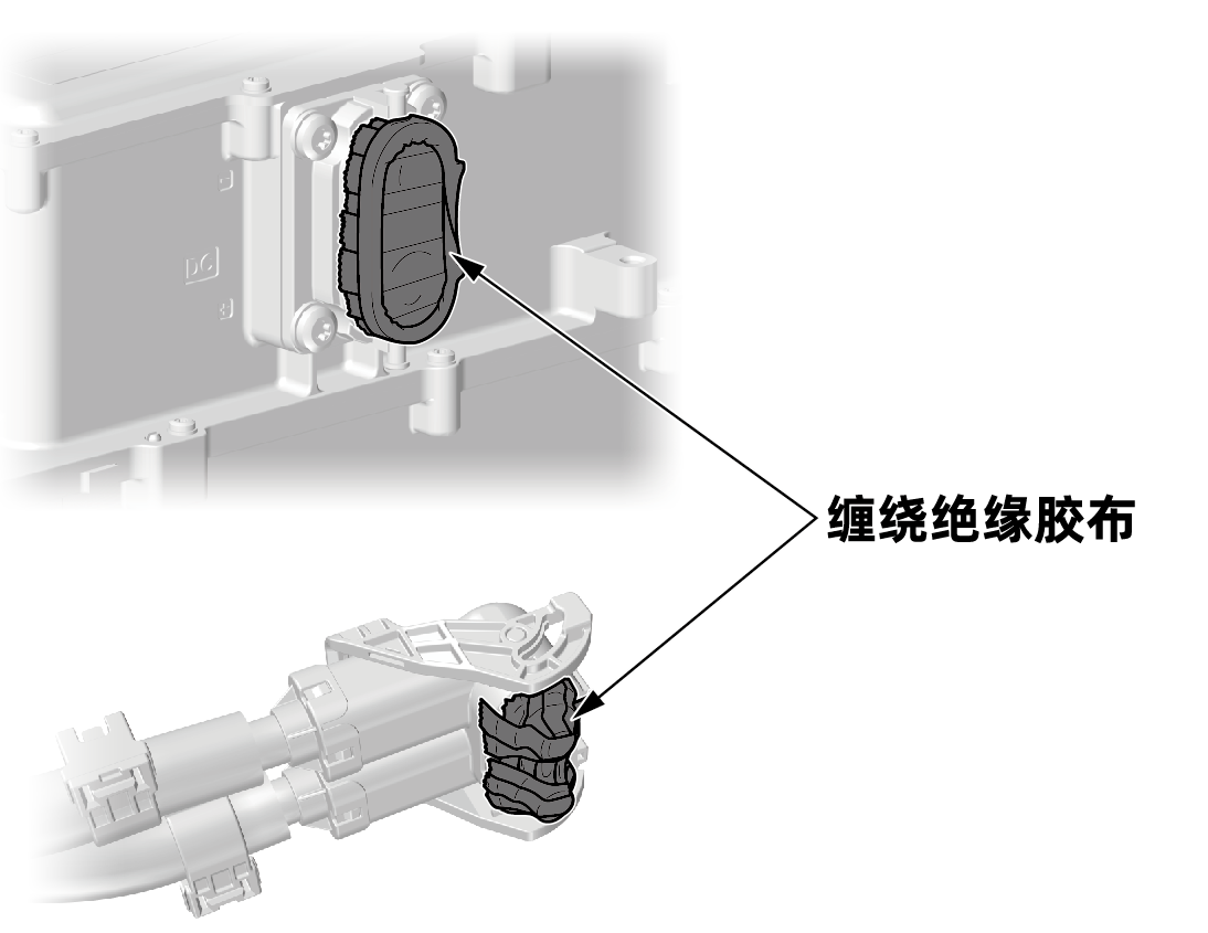 8.拆卸高压线束后,务必使用绝缘胶带分别缠绕高压接口的公插头及母插头,以防触电。 |