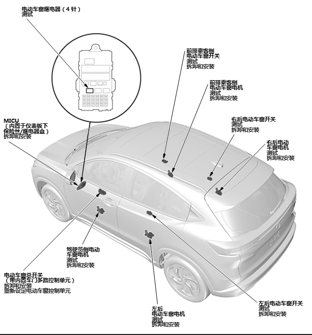 电动车窗系统说明 - 零部件 |