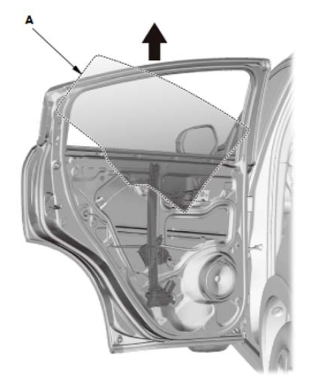 10.小心地从窗槽里拆下后车门玻璃(A)。