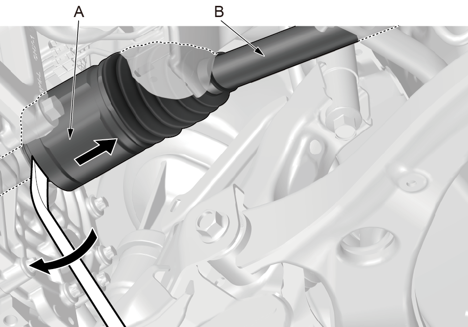 1.左驱动轴:使用撬棒将内万向节(A) 撬下。
