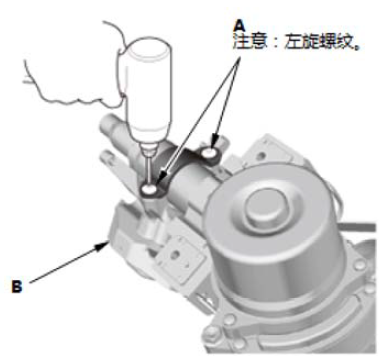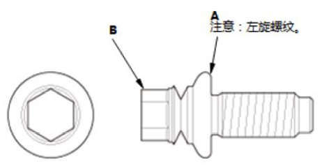 3. 拧紧安全螺栓,直至拧掉六角头 (B) 。