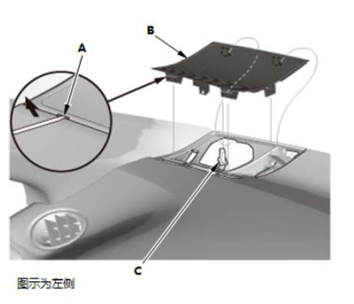 2.断开插接器 (C),并拆下高频扬声器格栅。