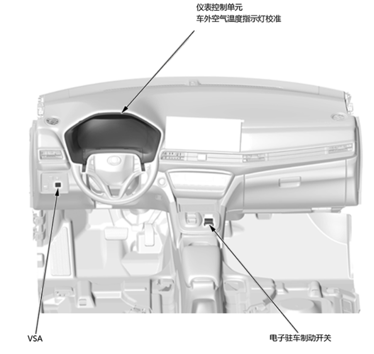 仪表控制单元使用来自车外空气温度传感器的测量值或车外空气温度传感器信号提供的通过B-CAN 从空调控制单元获取的测量值。车外空气温度指示器所显示的温度可被重新校准 ±3 °C (± 5 °F),以满足客户的期望。