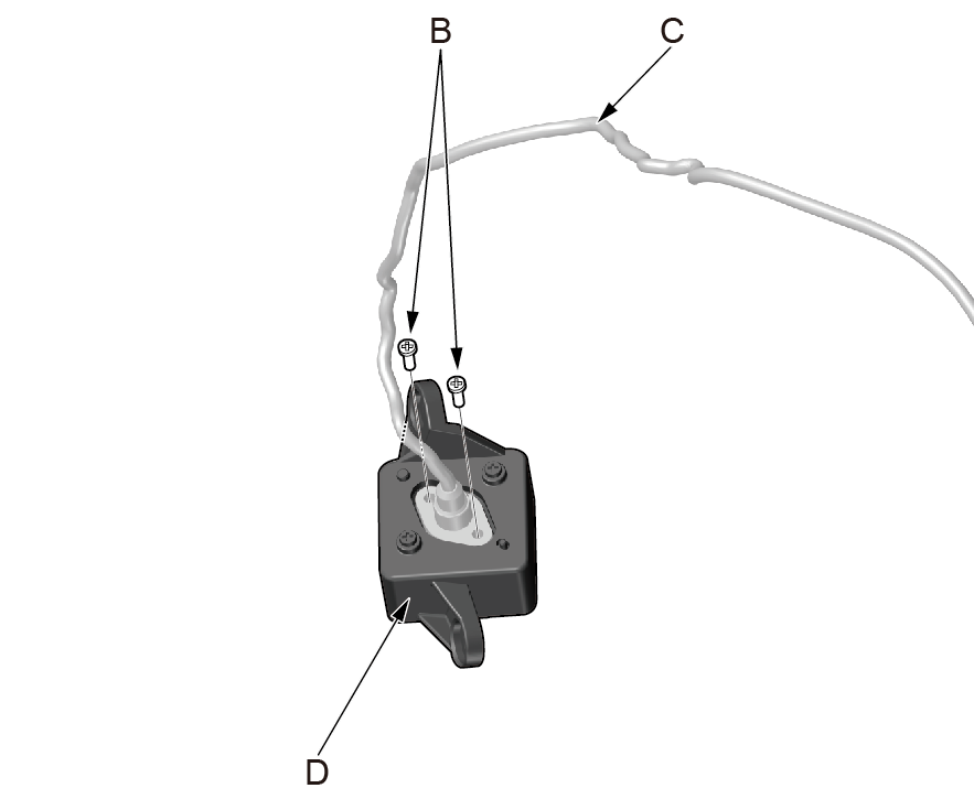 2. 使用十字起拆卸两颗线束插接器固定螺钉(B)。
