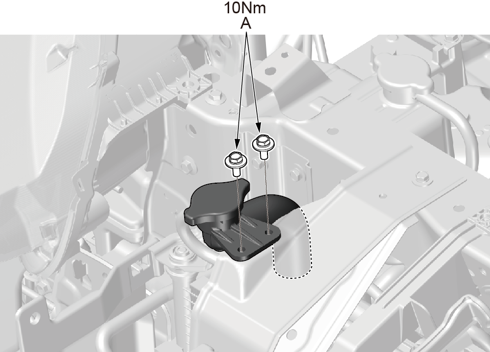 1.使用10mm套筒拆卸固定螺栓(A),脱开散热器水管头。 |