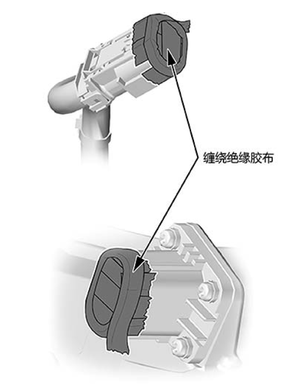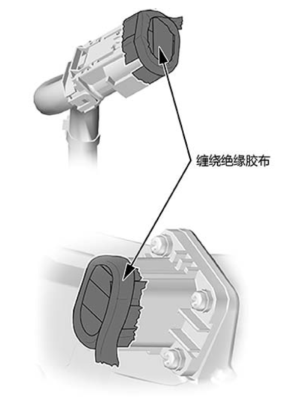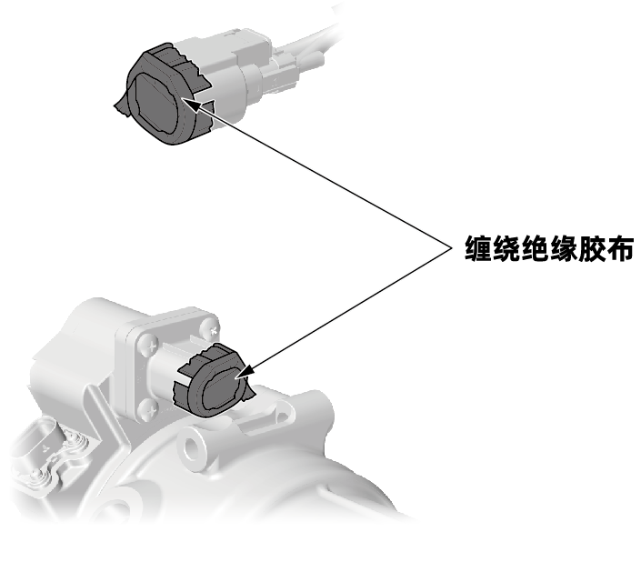 2.拆卸高压线束后,务必使用绝缘胶带分别缠绕高压接口的公插头及母插头,以防触电。 |