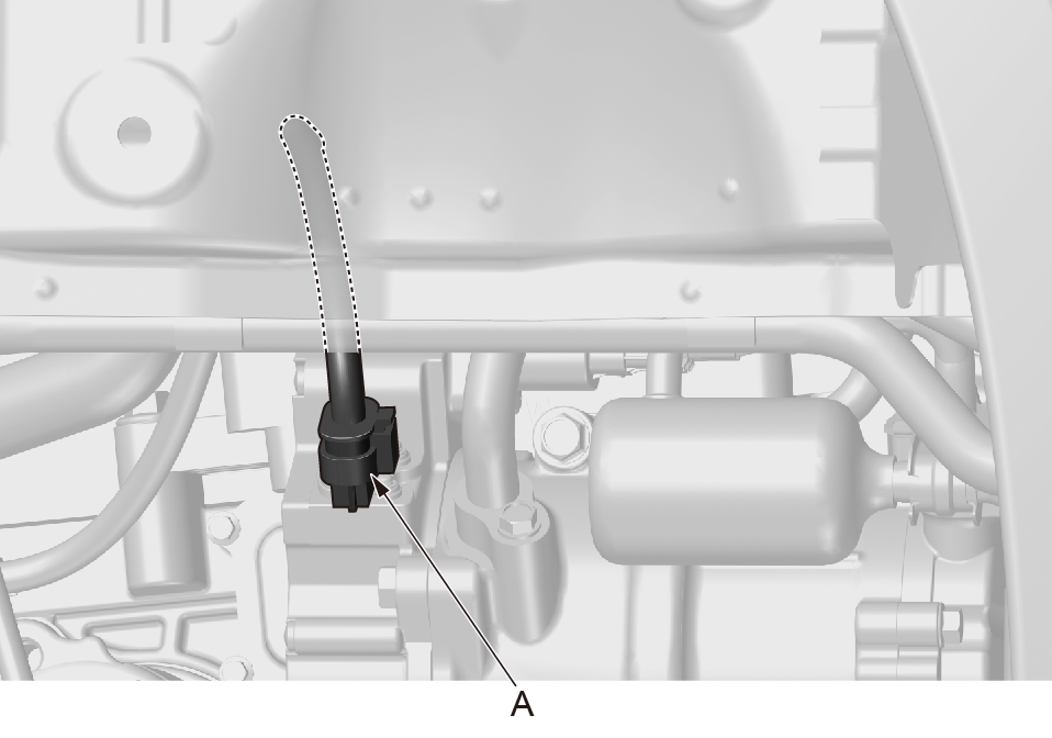 1. 按压空调电动压缩机信号线插接器的锁止卡,脱开电动压缩机信号线插接器 (A) 。 |