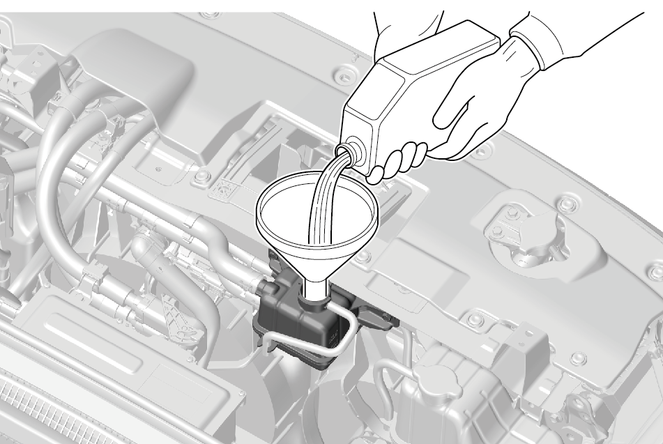4.将车辆转至 READY 模式。 5.在与步骤 2相同的条件下执行加热器加热操作 10 分钟。如果加热器加热工作后冷却液液位下降,则将冷却液添加至 MAX 标记。 |