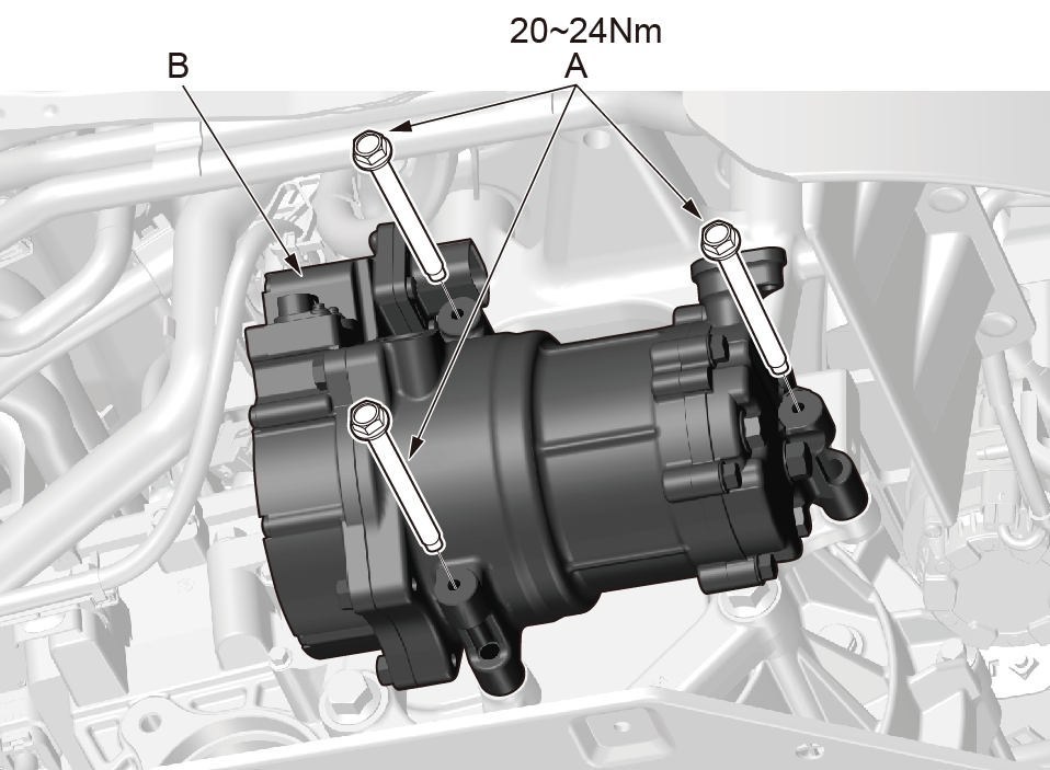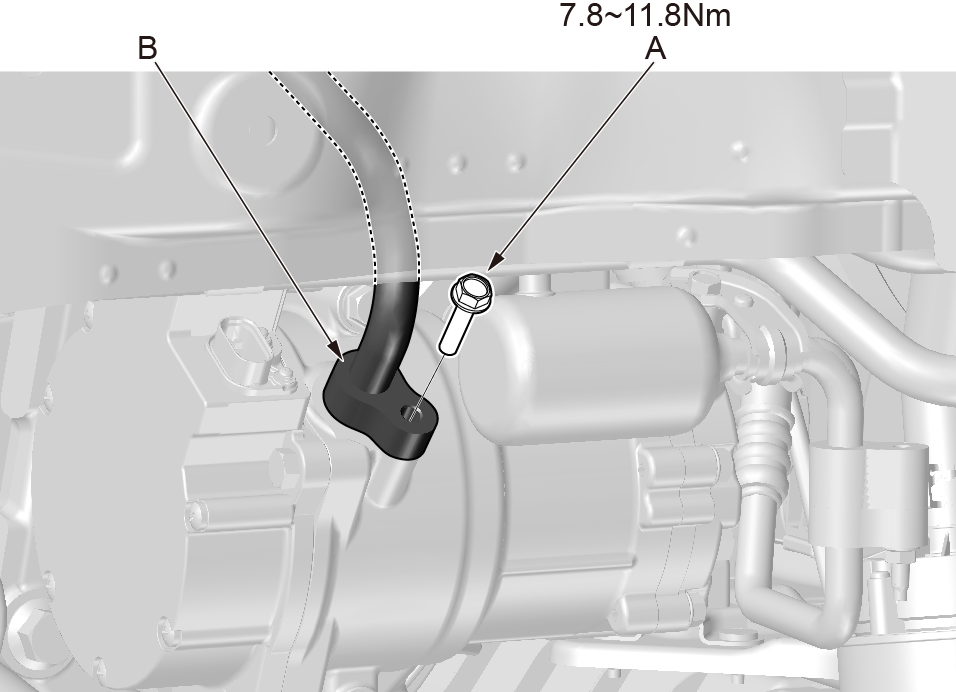 1. 使用12mm套筒扳手拆卸空调电动压缩机固定螺栓 (A)(M8×90)。 |