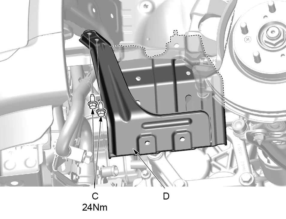 3.使用12mm套筒拆卸暖风系统PTC支架固定螺栓 4.取下暖风系统PTC支架(D)。 |