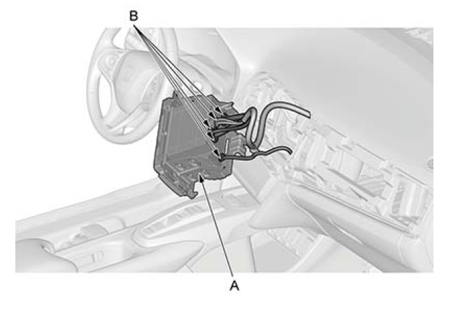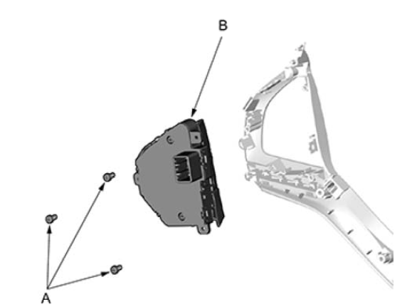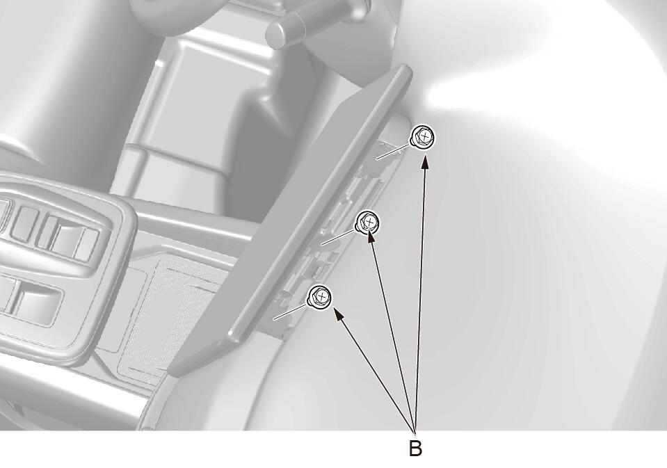 2. 使用8mm长套筒拆卸中控液晶屏3个固定螺栓(B)。 |
