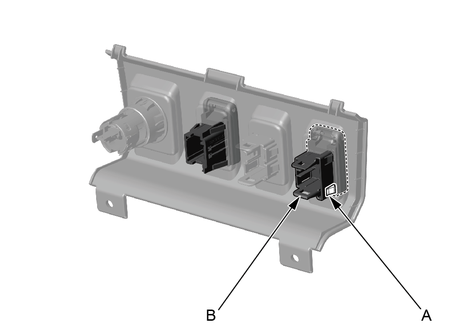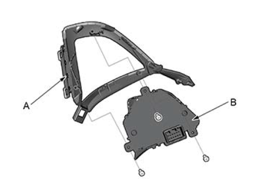 1. 按压远程信息处理单元与音响单元连接线束插接器锁止卡,脱开线束两端插接器(A)。 2. 取下远程信息处理单元与音响单元连接线束(B)。 |