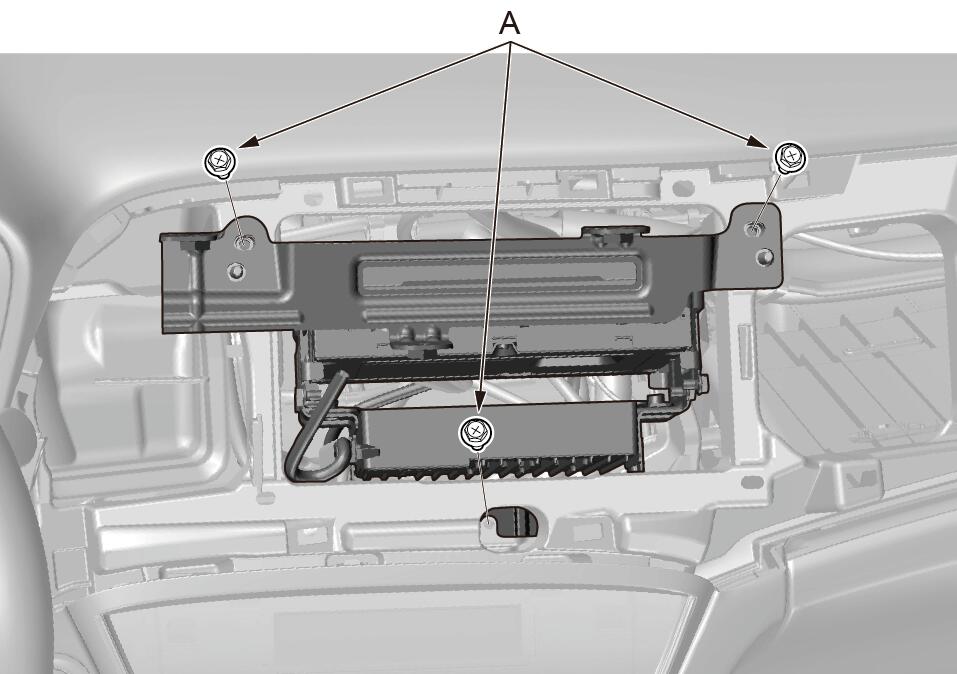 1. 使用8mm套筒拆卸音响单元总成固定螺栓(A)。
