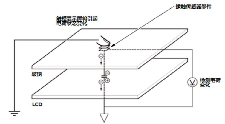 将手指作为导体靠近电容触摸屏,然后改变触摸传感器的电荷状态。通过检测触摸传感器的电压变化位置,将屏幕的触摸操作和动作关联起来。