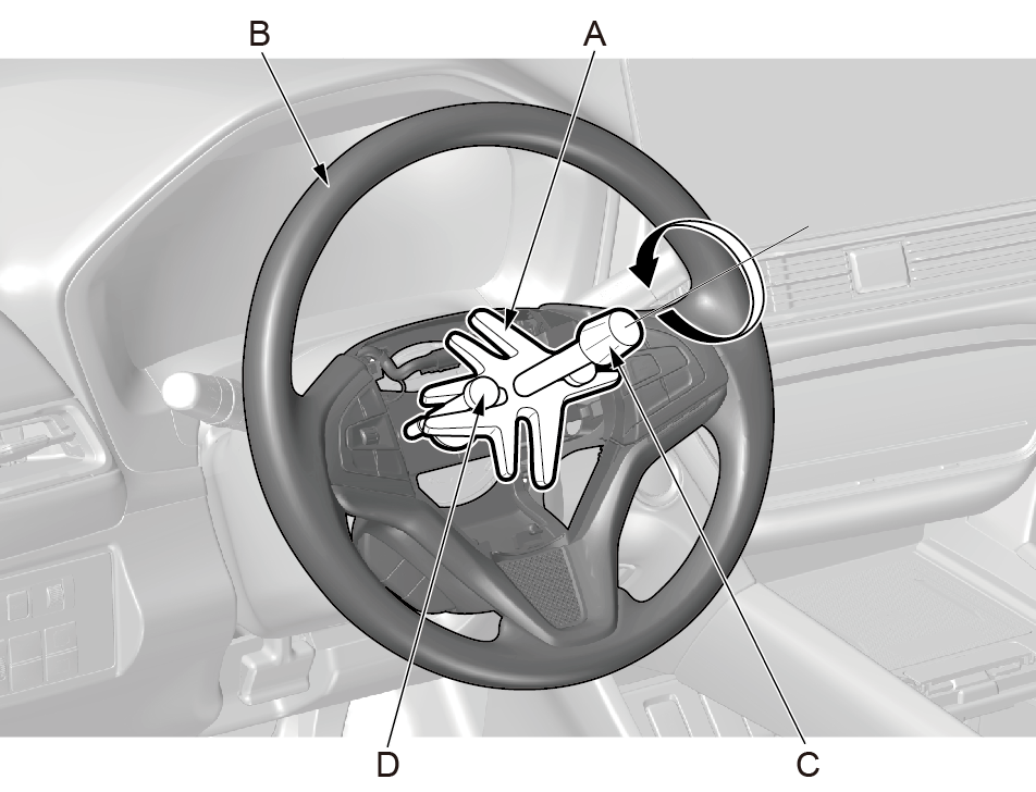 4. 在方向盘(B)上安装市售方向盘拔出器(B)。