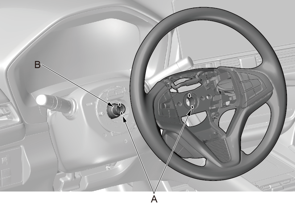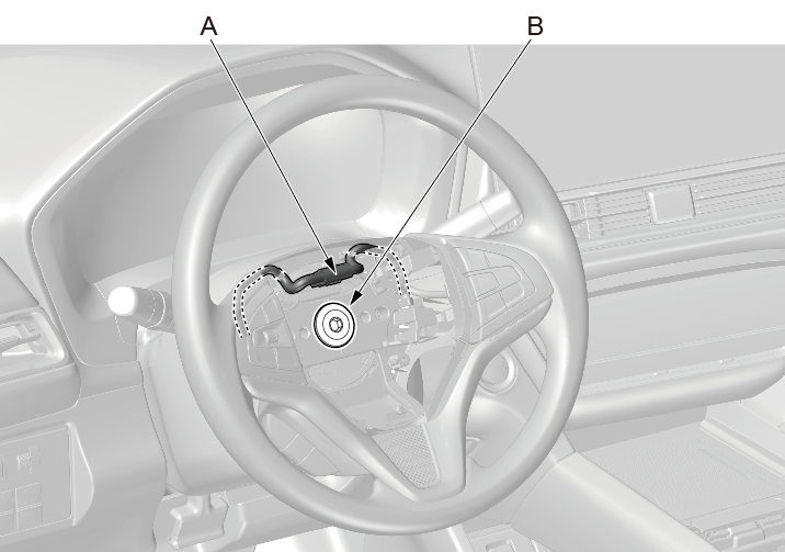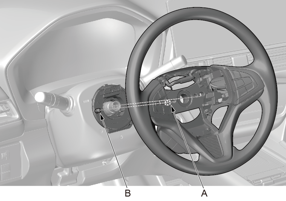 4. 定位方向盘毂(A),使其卡入线盘的销(B)。 |