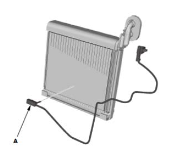 1.将蒸发器温度传感器(A)安装在蒸发器芯中,并注意以下事项:参考以下位置列表。