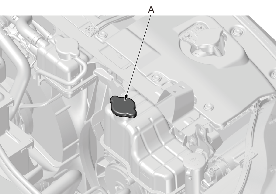 1.打开动力电池包冷却液膨胀水箱盖(A)。 |