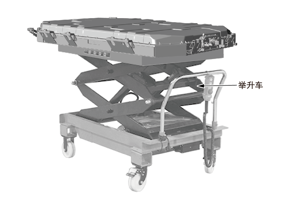 2.拆装及搬运动力电池包时,须采用升降车或专用工具;要轻取轻放,不得扔掷、挤压、踩踏、翻转,以免造成电池系统损坏或对人身的意外伤害。