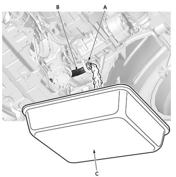 1.确保车辆处于 OFF (LOCK) 模式。 2.从12 V 蓄电池 (C) 上断开并隔离12 V 蓄电池传感