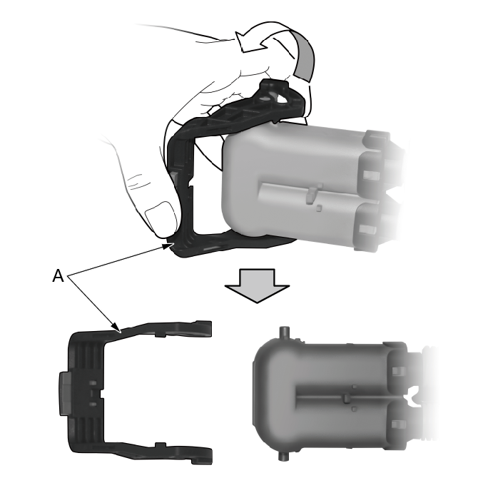 1.沿箭头方向单边扣下手柄,然后整个取下手 柄(A)。 |