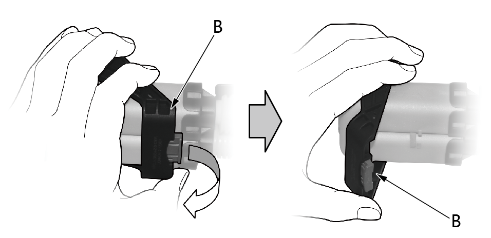 2.旋转手柄(B),解锁高压电缆插接器。